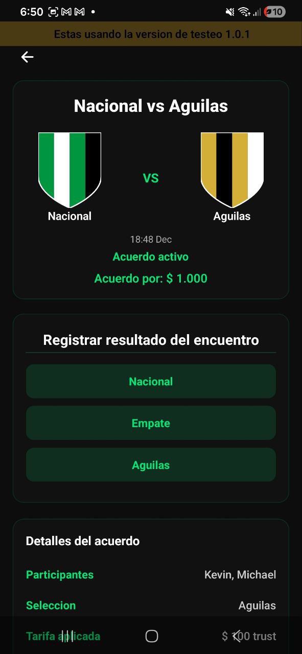 Crea acuerdos sobre fútbol protegidos por contratos inteligentes en blockchain. Sin apuestas, sin intermediarios, solo confianza.